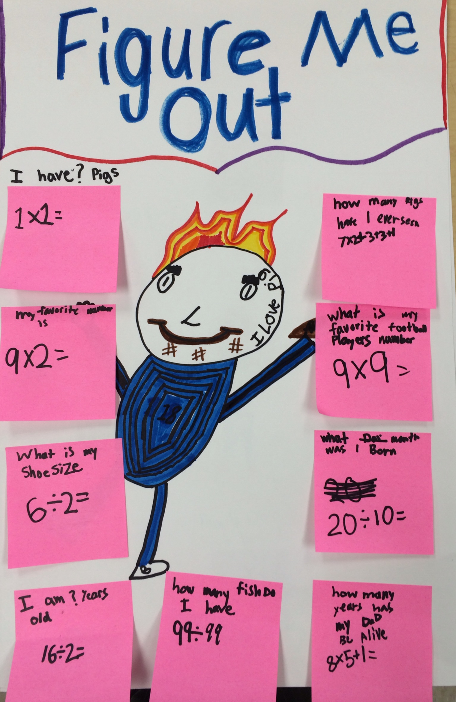 I showed them how to make it, and we talked about challenging ourselves with the number sentences. The students who were comfortable could take this pretty far! This project totally differentiated itself naturally, AND we have the added bonus of trying to figure each other’s posters out. This type of thing really helps develop pre-algebraic thinking, which can be very difficult for third graders to understand. The activity was age appropriate and helped them see how multiplication and division were related!